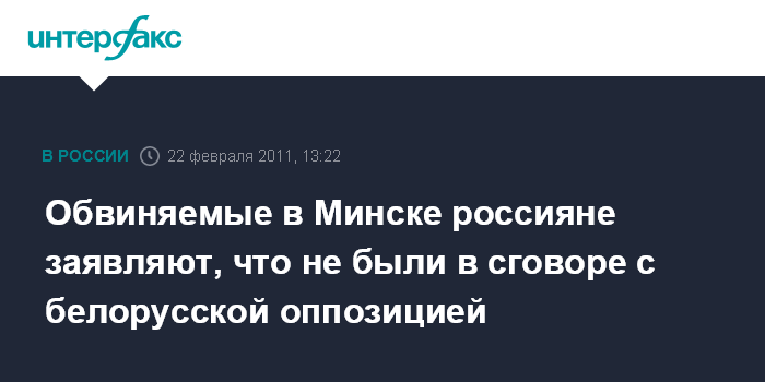 Минск. 22 февраля. INTERFAX.RU - Обвиняемый в участии в массовых беспорядках в Минске 19 декабря гражданин РФ Артем Бреус отрицает, что состоял в сговоре с лидерами белорусской оппозиции, сообщает корреспондент агентства "Интерфакс" из зала суда Московского района Минска.