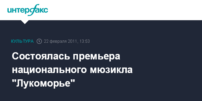 Москва. 22 февраля. INTERFAX.RU - На сцене ККЗ "Пушкинский" 19 февраля состоялась премьера национального мюзикла "Лукоморье" по мотивам русских народных сказок и произведений А. С. Пушкина.