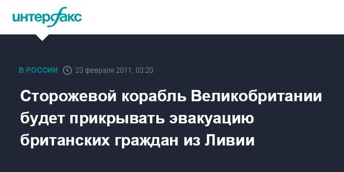 Сторожевой корабль Великобритании будет прикрывать эвакуацию британских граждан из Ливии