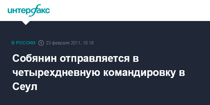 Москва. 23 февраля. INTERFAX.RU - Мэр Москвы Сергей Собянин утвердил состав официальной делегации правительства города, которая с 23 по 26 февраля будет находиться в Сеуле для переговоров с руководством Южной Кореи и ее столицы, сообщил "Интерфаксу" источник в городской администрации. По его словам, С.Собянин встретится с президентом Ли Мен Баком, который ранее занимал пост мэра Сеула. "В ходе командировки мэр Москвы и члены правительства встретятся с руководством ведущих корейских компаний "Самсунг", "Хендай", LG и "Лотте", - добавили в горадминистрации.