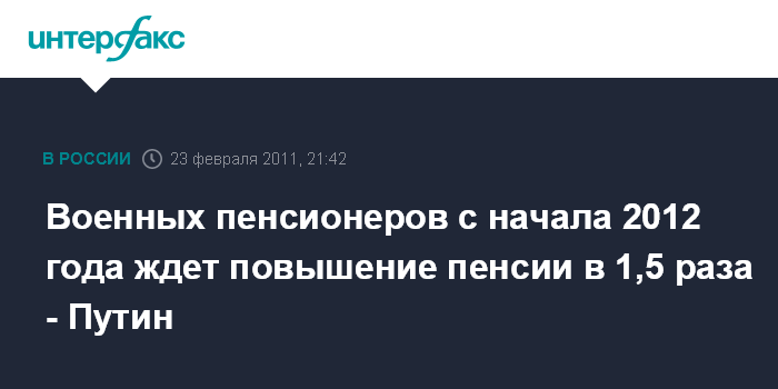 Военных пенсионеров с начала 2012 года ждет повышение пенсии в 1,5 раза - Путин