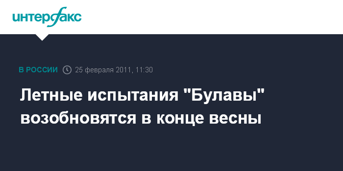 Летные испытания "Булавы" возобновятся в конце весны