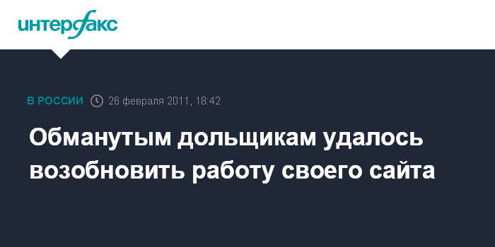 Обманутым дольщикам удалось возобновить работу своего сайта