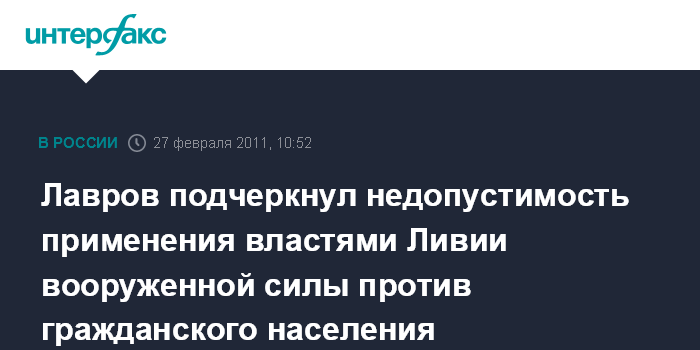Лавров подчеркнул недопустимость применения властями Ливии вооруженной силы против гражданского населения