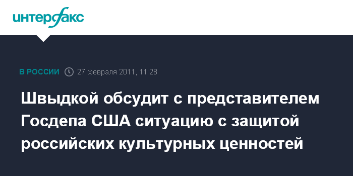 Швыдкой обсудит с представителем Госдепа США ситуацию с защитой российских культурных ценностей
