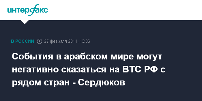 События в арабском мире могут негативно сказаться на ВТС РФ с рядом стран - Сердюков
