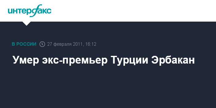 Лондон. 27 февраля. INTERFAX.RU - Неджеметтин Эрбакан, который в прошлом занимал пост премьера Турции, а также был наставником нынешнего премьер-министра Реджепа Тайипа Эрдогана, скончался на 84-м году жизни, сообщает в воскресенье британская телерадиовещательная корпорация Би-би-си. Н.Эрбакан был премьер-министром Турции в конце 90-х годов прошлого века.