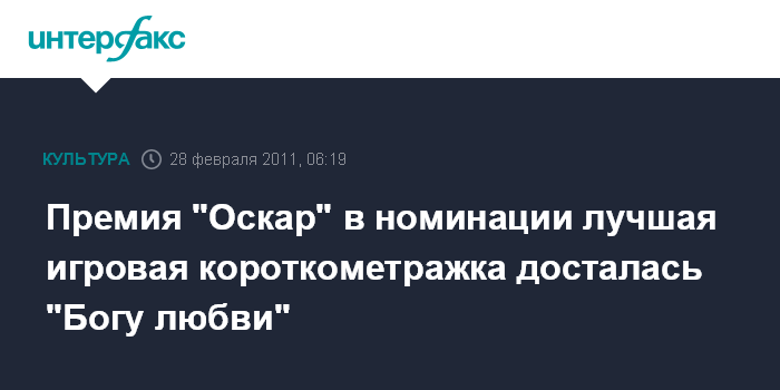 Премия "Оскар" в номинации лучшая игровая короткометражка досталась "Богу любви"