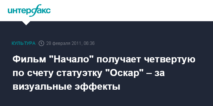 Фильм "Начало" получает четвертую по счету статуэтку "Оскар" – за визуальные эффекты