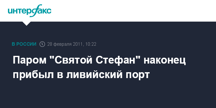 Москва. 28 февраля. INTERFAX.RU - Паром "Святой Стефан" прибыл в порт Рас-Лануф (Ливия), сообщило ОАО "Российские железные дороги" (РЖД).