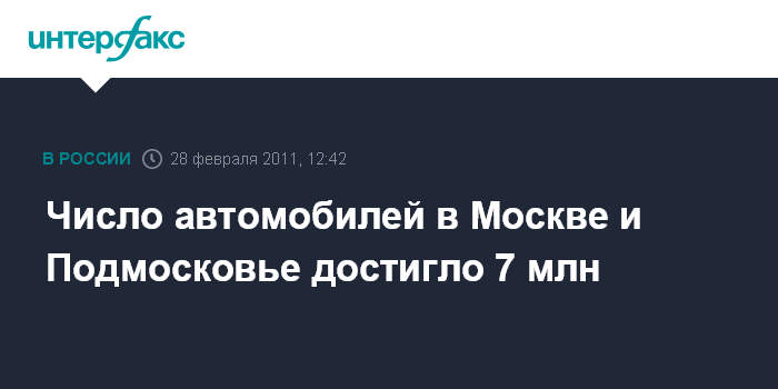 Число автомобилей в Москве и Подмосковье достигло 7 млн