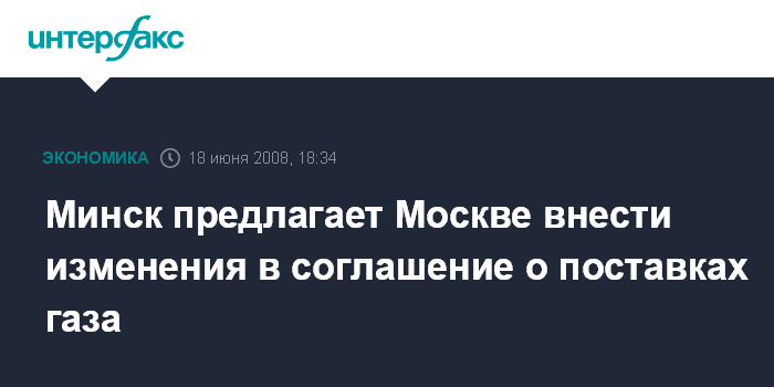 Москва. 18 июня. INTERFAX.RU - Белоруссия предлагает России внести коррективы в соглашение о поставках газа, заявил в интервью "Интерфаксу" вице-премьер правительства Белоруссии Андрей Кобяков.
