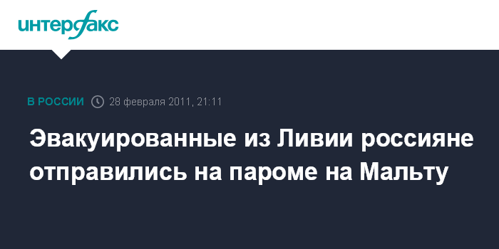 Москва. 28 февраля. INTERFAX.RU - Паром "Святой Стефан" с эвакуированными гражданами России на борту отправился в понедельник из Ливии на Мальту.