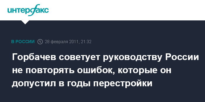 "Я считаю, что сейчас происходит то же самое, с чем я столкнулся во время перестройки. Тогда я стал слишком самоуверенным. Сегодня наши лидеры тоже слишком уверены в себе. Иногда сложно признавать собственные ошибки, однако делать это нужно. Я был слишком самоуверенным и высокомерным, и я поплатился за это. Дальнейшее развитие событий стало моим наказанием. И теперь я делюсь своим опытом, так как не хочу, чтобы они сбились с пути, сделав похожие ошибки", - заявил Горбачев в интервью британской газете The Independent.