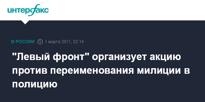 "Левый фронт" организует акцию против переименования милиции в полицию