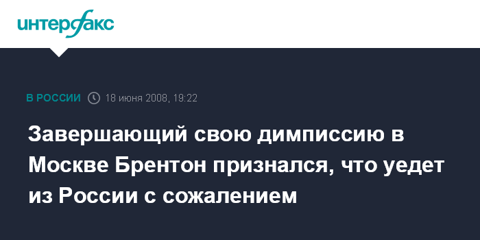 Завершающий свою димписсию в Москве Брентон признался, что уедет из России с сожалением