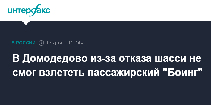 Новосибирск. 1 марта. INTERFAX.RU - В московском аэропорту "Домодедово" из-за отказа управления стойки шасси не взлетел пассажирский Боинг - 737, выполнявший рейс "Москва - Красноярск".