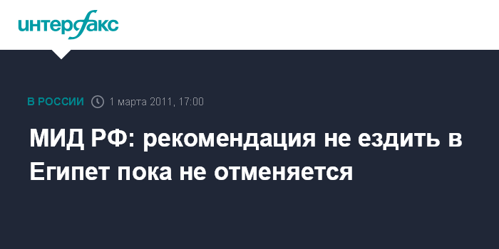 Москва. 1 марта. INTERFAX.RU - МИД России пока не снимает рекомендацию не посещать Египет.