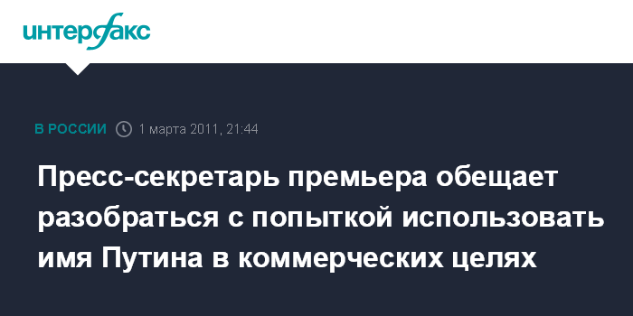 Пресс-секретарь премьера обещает разобраться с попыткой использовать имя Путина в коммерческих целях
