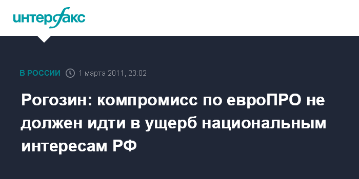 Рогозин: компромисс по евроПРО не должен идти в ущерб национальным интересам РФ