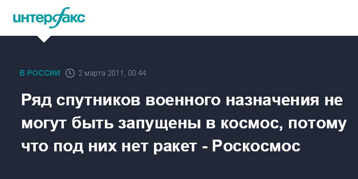 Ряд спутников военного назначения не могут быть запущены в космос, потому что под них нет ракет - Роскосмос