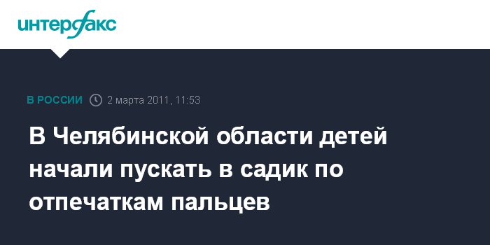 Челябинск. 2 марта. INTERFAX.RU - Детский сад N109 города Миасс (Челябинская область) стал первым в регионе, где установлена система пропуска воспитанников, их родителей и сотрудников в здание по отпечаткам пальцев, сообщает пресс-служба горадминистрации.