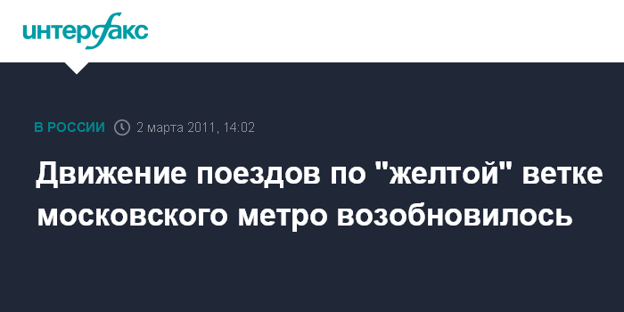 Движение поездов по "желтой" ветке московского метро возобновилось