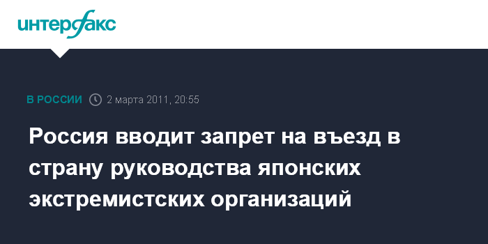Россия вводит запрет на въезд в страну руководства японских экстремистских организаций