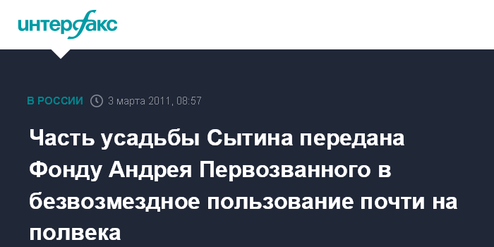 Часть усадьбы Сытина передана Фонду Андрея Первозванного в безвозмездное пользование почти на полвека