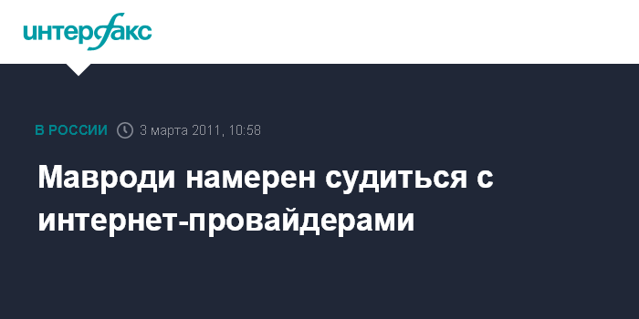 Москва. 3 марта. INTERFAX.RU - Адвокаты основателя "МММ" Сергея Мавроди готовят иски в суд в отношении двух городских провайдеров, ограничивших доступ к его блогу, сообщил адвокат Мавроди Александр Молохов "Интерфаксу" в четверг.