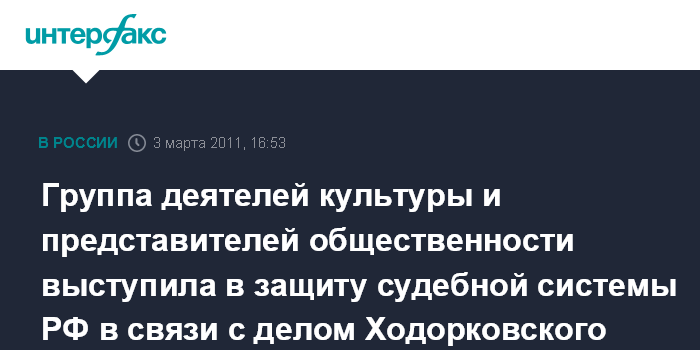 Группа деятелей культуры и представителей общественности выступила в защиту судебной системы РФ в связи с делом Ходорковского