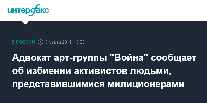 Адвокат арт-группы "Война" сообщает об избиении активистов людьми, представившимися милиционерами