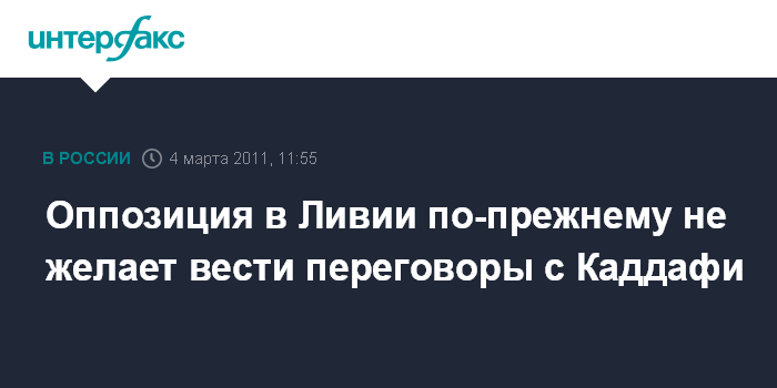 Лондон. 4 марта. INTERFAX.RU - Ливийская оппозиция по-прежнему отказывается идти на переговоры, пока Муамар Каддафи не отойдет от власти и не покинет страну, сообщает в пятницу британская телерадиокорпорация BBC.