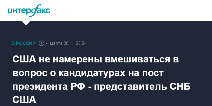 США не намерены вмешиваться в вопрос о кандидатурах на пост президента РФ - представитель СНБ США