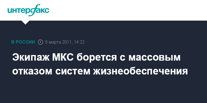 Вашингтон. 5 марта. NITERFAX.RU - Американские и российские системы жизнеобеспечения работают с перебоями на Международной космической станции (МКС), сообщает Национальное аэрокосмическое агентство США.