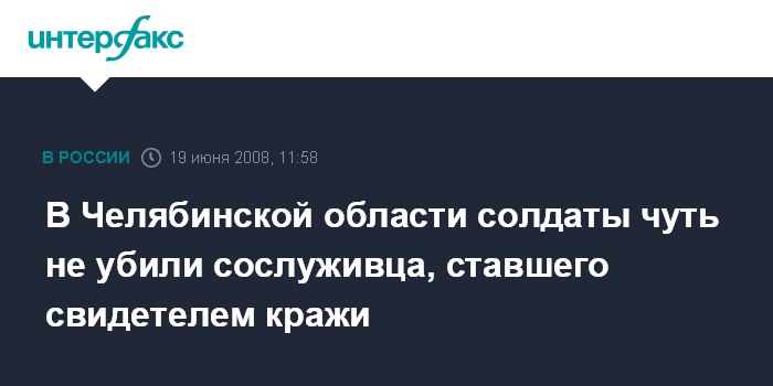 Как сообщили агентству "Интерфакс" в челябинском гарнизоне, в конце прошлого года на территории танкового училища военнослужащий охранял имущество образовательного учреждения. "На посту он стал свидетелем кражи. Несколько военнослужащих хотели украсть строительное оборудование. Чтобы убрать свидетеля, злоумышленники накинулись на солдата, ударили его по голове и попытались задушить. Однако ему удалось вырваться и убежать", - рассказал сотрудник гарнизона.