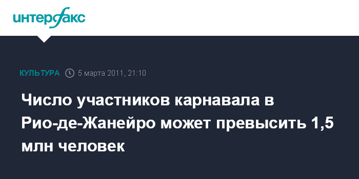 Число участников карнавала в Рио-де-Жанейро может превысить 1,5 млн человек