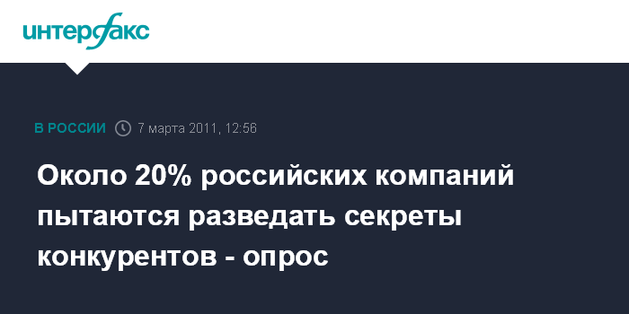 Около 20% российских компаний пытаются разведать секреты конкурентов - опрос