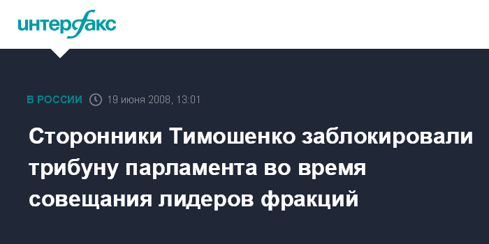Москва. 19 июня. INTERFAX.RU - Депутаты фракции Блока Юлии Тимошенко в четверг заблокировали президиум и трибуну парламента Украины, подперев стульями двери, через которые в президиум входит спикер.