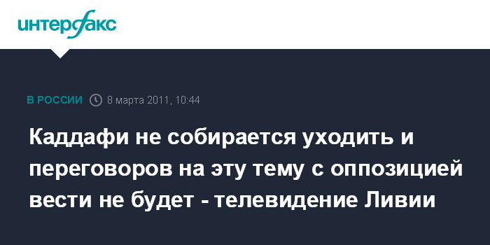 Каддафи не собирается уходить и переговоров на эту тему с оппозицией вести не будет - телевидение Ливии