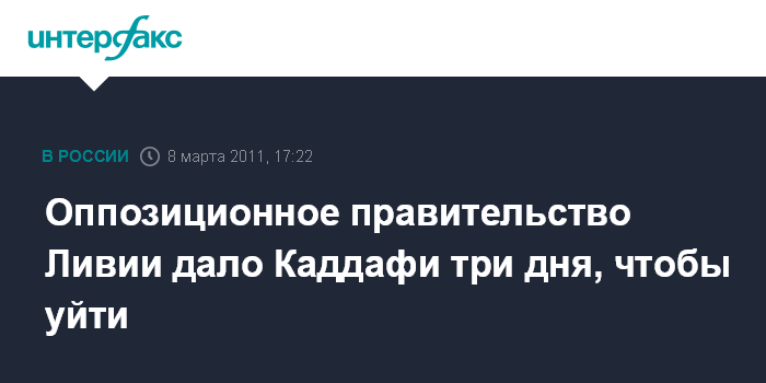 Оппозиционное правительство Ливии дало Каддафи три дня, чтобы уйти