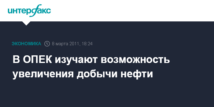Москва. 8 марта. INTERFAX.RU - Участники ОПЕК обсуждают целесообразность проведения экстренной встречи и принятия решения об увеличении объема добычи нефти, пишет Bloomberg со ссылкой на министра нефти Кувейта. "Я говорил с Абдалла эль-Бадри (генеральный секретарь ОПЕК - АНИ) об этом, и он спросит у каждого на предмет того, необходима ли встреча членов ОПЕК, экстренное заседание", - сказал министр нефти Кувейта шейх Ахмед аль-Абдалла ас-Сабах журналистам в Кувейте во вторник. "Мы должны выяснить, есть ли потребность в увеличении (добычи - АНИ) или нет", - добавил он.