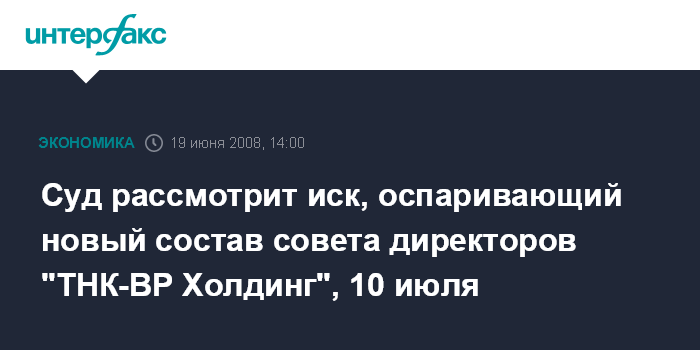 Суд рассмотрит иск, оспаривающий новый состав совета директоров "ТНК-ВР Холдинг", 10 июля