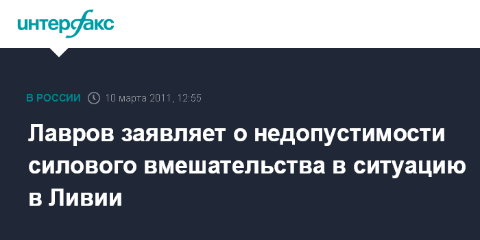 Лавров заявляет о недопустимости силового вмешательства в ситуацию в Ливии