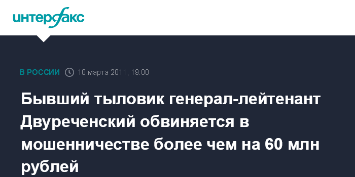 Бывший тыловик генерал-лейтенант Двуреченский обвиняется в мошенничестве более чем на 60 млн рублей