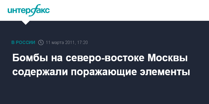 Москва. 11 марта. INTERFAX.RU - Взрывные устройства, сработавшие на северо-востоке Москвы, были начинены поражающими элементами, сообщил "Интерфаксу" источник в правоохранительных органах города в пятницу.