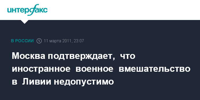 Москва подтверждает, что иностранное военное вмешательство в Ливии недопустимо