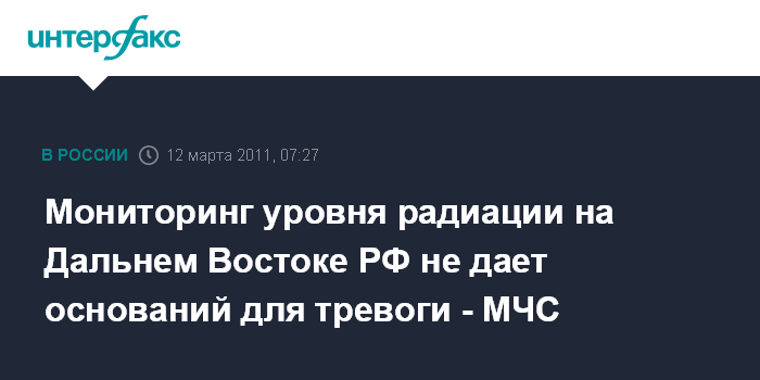 Мониторинг уровня радиации на Дальнем Востоке РФ не дает оснований для тревоги - МЧС