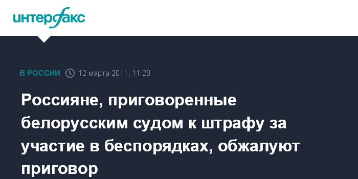Россияне, приговоренные белорусским судом к штрафу за участие в беспорядках, обжалуют приговор