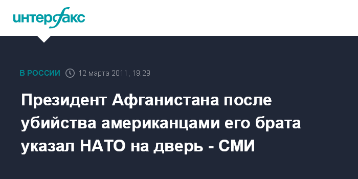 Президент Афганистана после убийства американцами его брата указал НАТО на дверь - СМИ